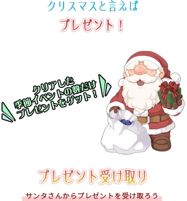 「サンタ」に話しかけて、季節イベントのクリア回数に応じた「アニバーサリーBOX」がもらえました。