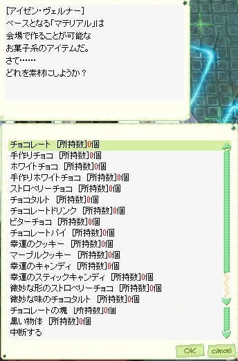 「チョコレート」「ホワイトチョコレート」「キャンディ」「クッキー」「失敗した物」