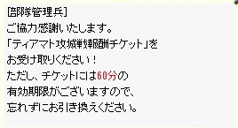 ⑦基地・部隊管理兵から報酬のチケットを受取る